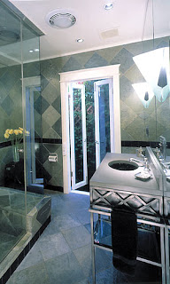 Here is a way to convert a small bathroom. Designed by Christopher Grubb, he changed a tiny bathroom into compact elegance by replacing a small window with glass doors and the tub with a glass enclosed shower. Also, by replacing an oversized sink with a modern metal one and tiling the entire bathroom with large tiles instead of many little ones.